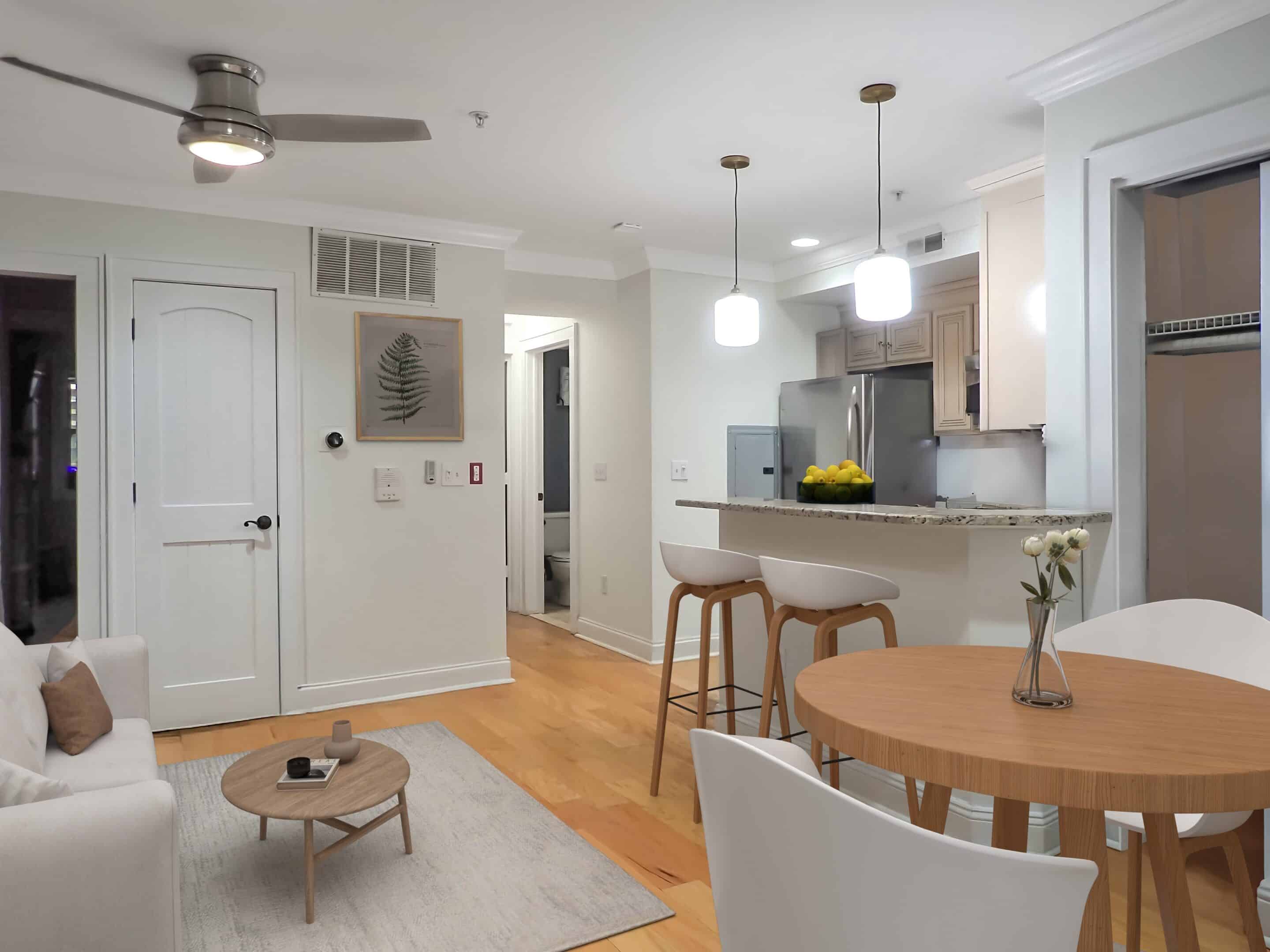 Discover this enchanting garden-style apartment in a safe neighborhood in Hoboken. This fully furnished apartment features a private entrance, a back deck, and abundant natural light. Available for short or long-term rentals, it’s a perfect two-bedroom executive suite at garden level in central Hoboken.
